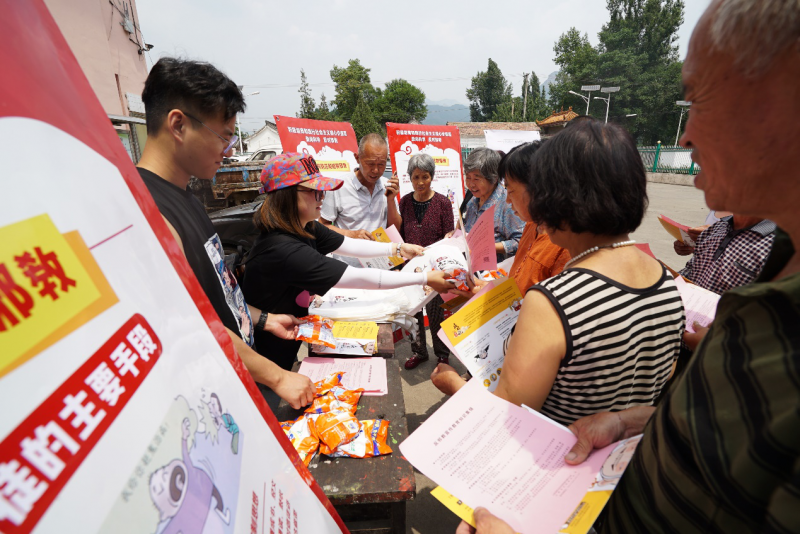 活動期間,工作人員主要通過懸掛橫幅,擺放展架,分發(fā)反邪教宣傳資料,贈送環(huán)保袋、洗衣粉、香皂盒小禮品等形式進行了宣傳。在現(xiàn)場,工作人員擺放了有關“什么是邪教” “如何防范和抵制邪教”以及“邪教的主要手段”等內容介紹的展板,并向村民們講解邪教的種類、本質、特征和危害,邪教與宗教的區(qū)別,處理邪教的法律法規(guī)等等。據(jù)統(tǒng)計,在活動現(xiàn)場共分發(fā)宣傳頁、西游反邪宣傳折頁、以及小禮品約1500份。同時,我們還在“晉風網(wǎng)”網(wǎng)站制作活動專題頁面;在“晉風網(wǎng)”“西游幺幺零”等微信公眾號上開設“反邪活動”專欄,以及在“西游幺幺零”頭條號上,針對反邪宣傳月活動進行重點宣傳,著力提升活動的傳播力。